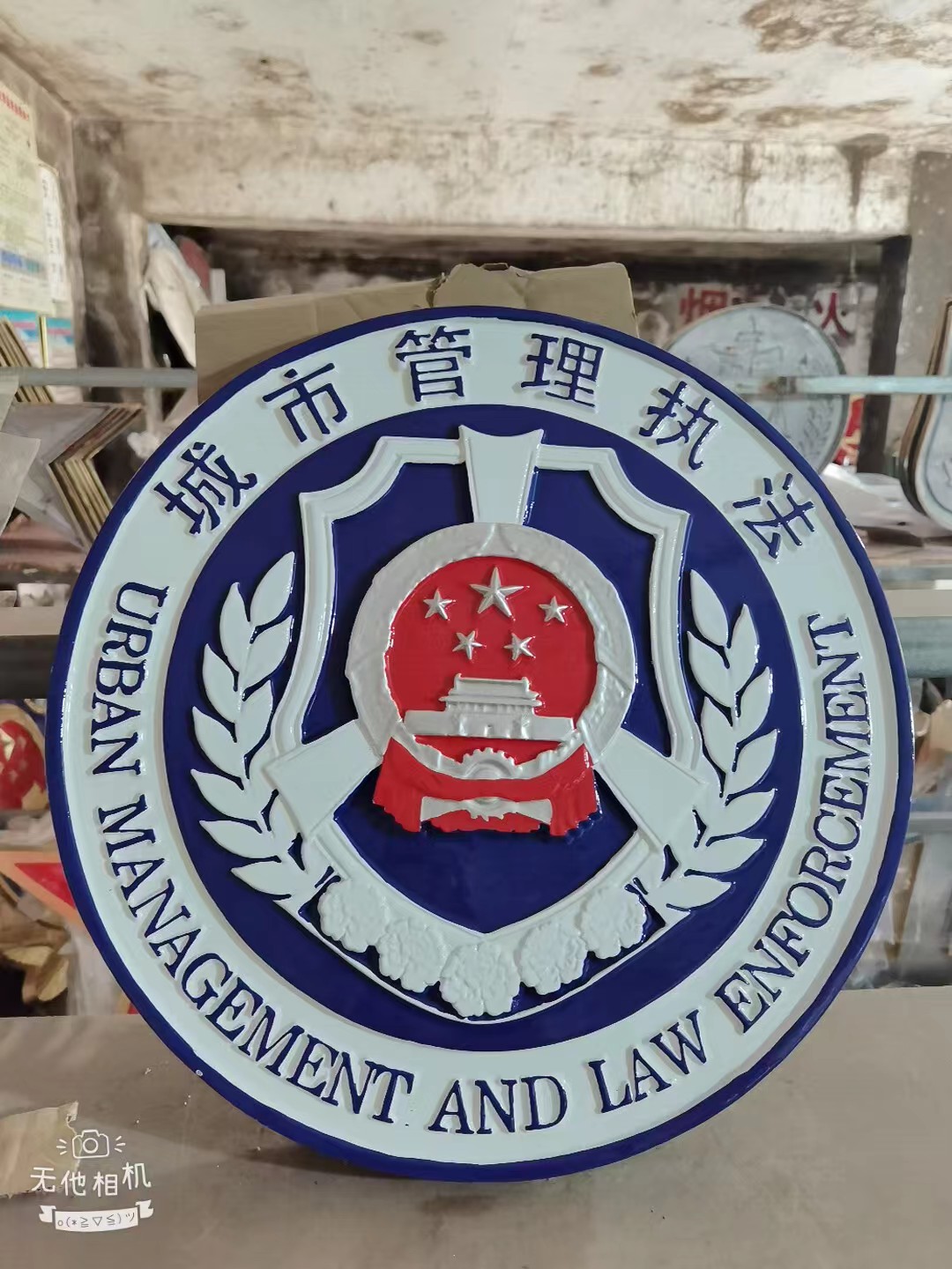 | 安裝方式 | 城市管理執法徽章-小徽章背面都配有穿掛耳孔,釘子釘在墻上,再用穿鐵絲鋼絲,適合安裝在辦公室/會議室會場等。大徽后面為膨脹螺絲孔,安裝需要定做鐵架,鐵架固定墻面上后,再將徽章固定在鐵架上。玻璃幕墻也是需要鐵架方式安裝。 |